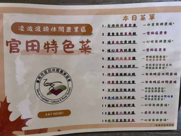 臺南市官田區以「菱角之鄉」聞名,市府近年積極輔導其農村轉型,朝向兼具產業發展與觀光休閒的方向邁進。今(19)日上午於胡蘆埤自然公園舉辦「114年度凌波渡頭休閒農業區成果發表暨『菱魂良品』啟用儀式」,展 ...更多