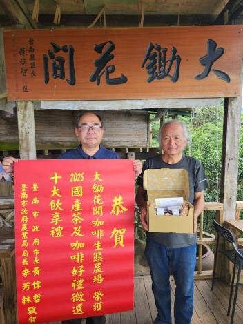 圖2:祝賀大鋤花間咖啡生態農場榮獲「2025國產茶及咖啡十大飲享禮」殊榮