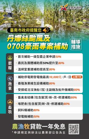 丹娜絲颱風臺南市政府扶助措施及農業部專區相關資訊