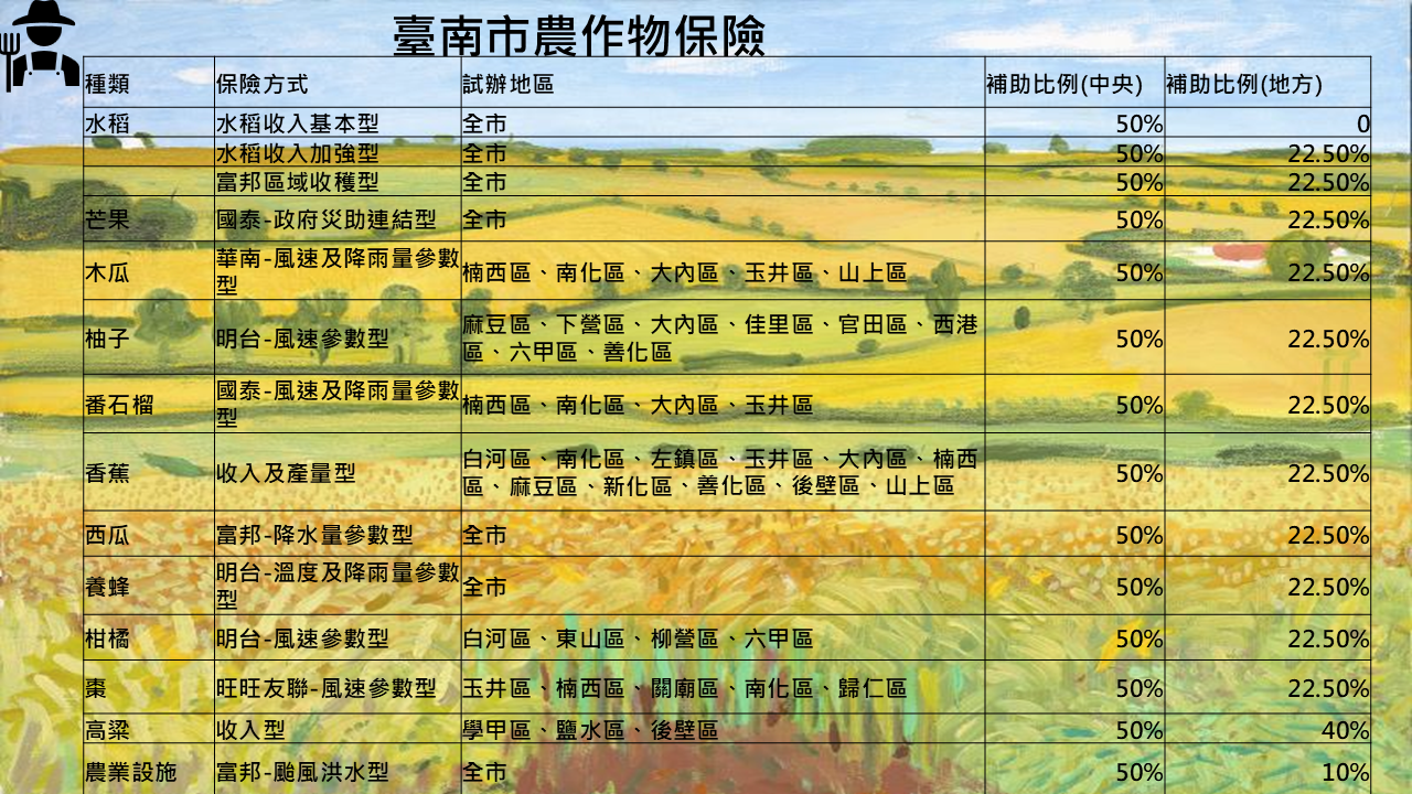 臺南農產分布及產期